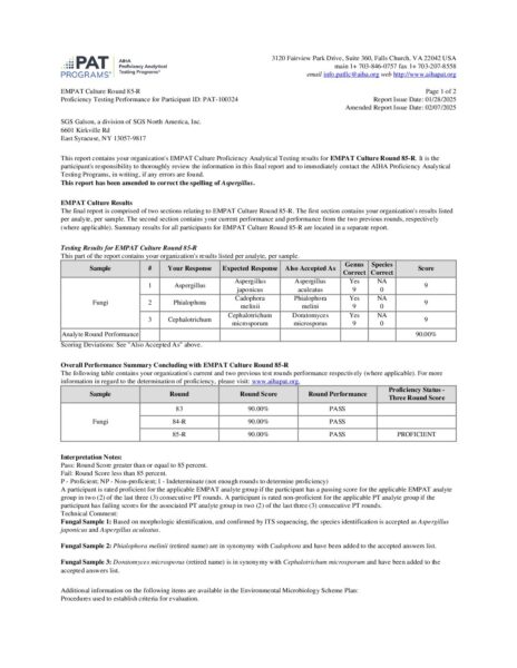 EMPAT Culture Proficiency Analytical Testing results for EMPAT Culture Round 85-R