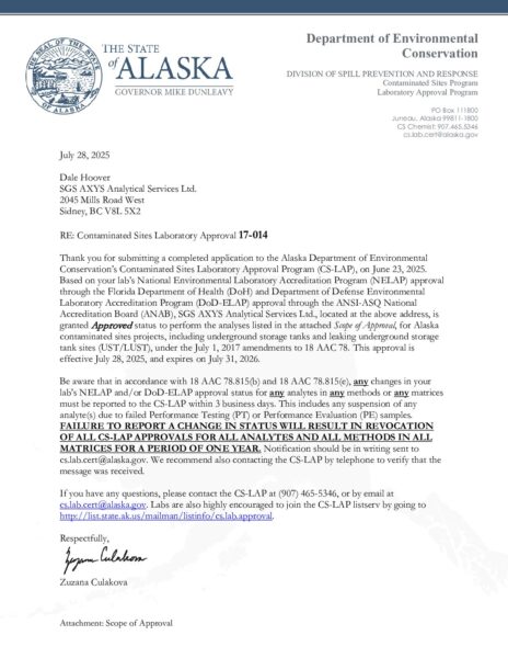 SGS AXYS Alaska Lab Approval