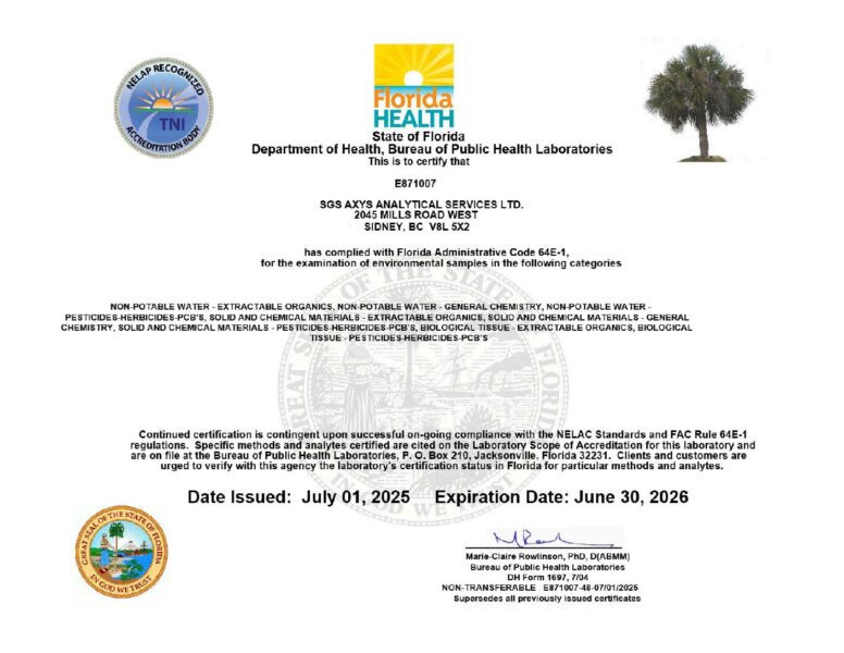 SGS AXYS Florida cert and scope