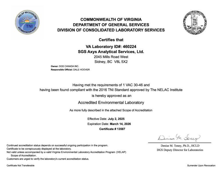 SGS AXYS Virginia cert and scope