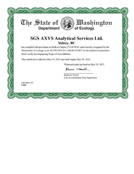 SGS AXYS Washington cert and scope