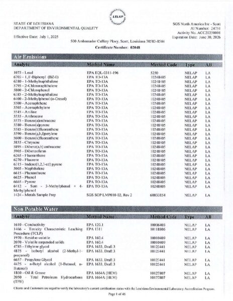 SGS Scott Louisiana DEQ
