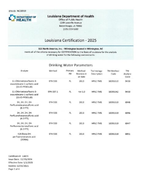 SGS Wilmington Louisiana DOH